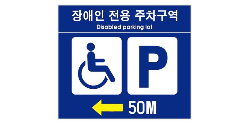 장애인전용 주차구역 안내표지의 규격은 가로 0.7미터, 세로 0.6미터로 하고