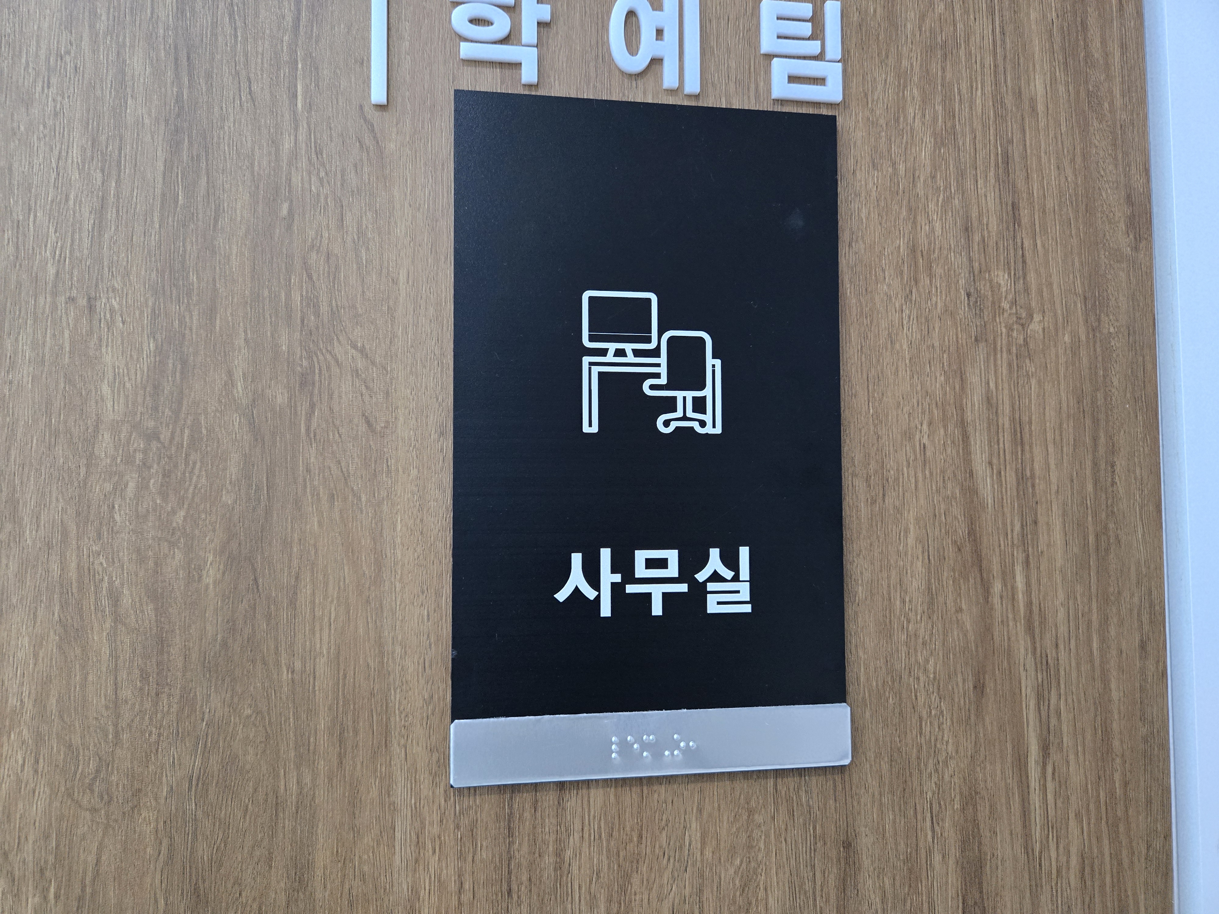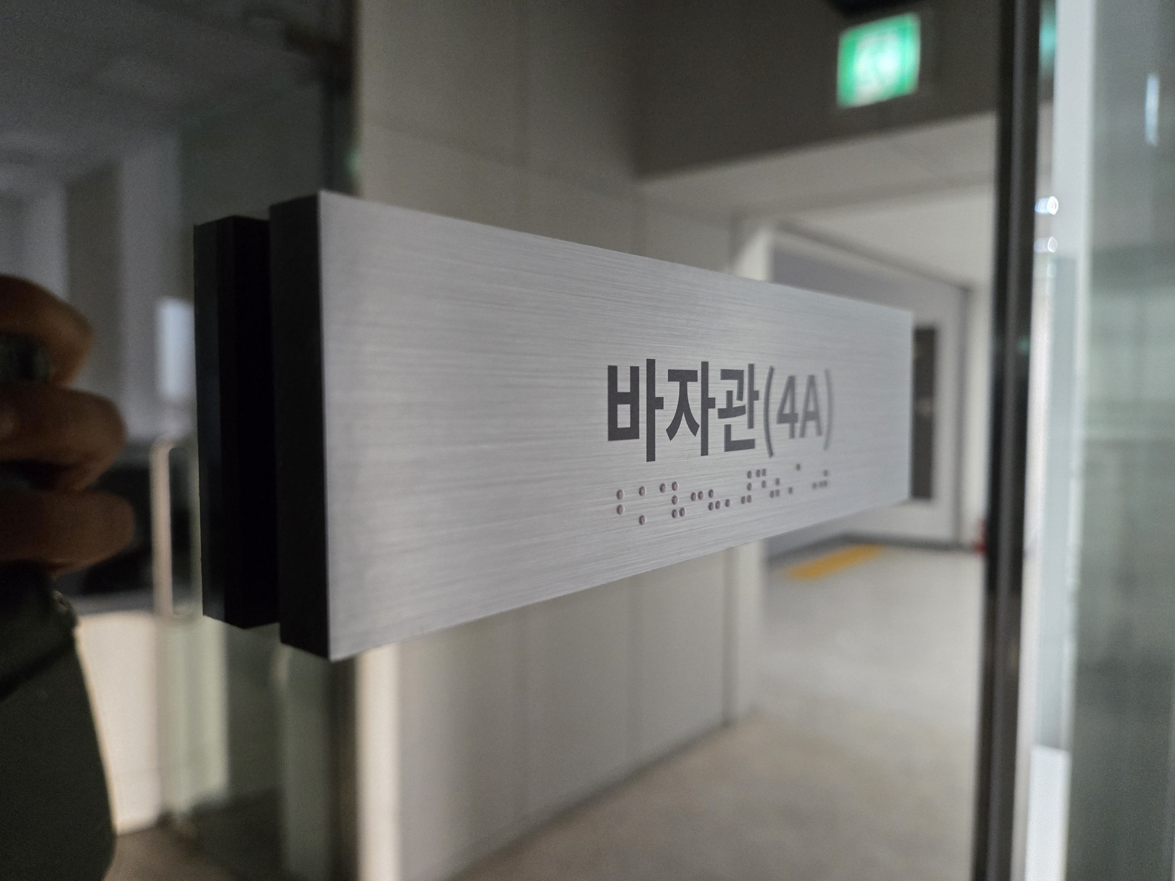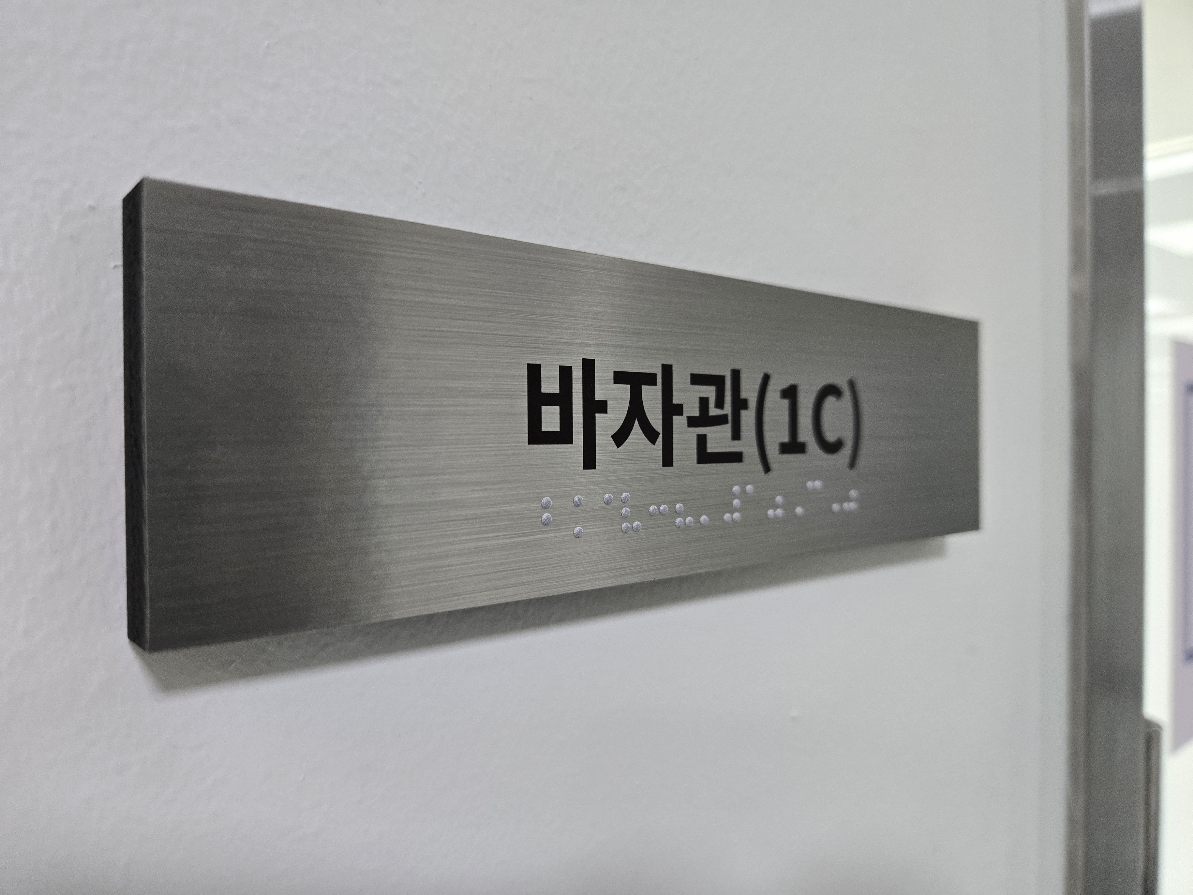 1.5미터 높이에는 방이름을 표기한 점자표지판을 부착하여야합니다.