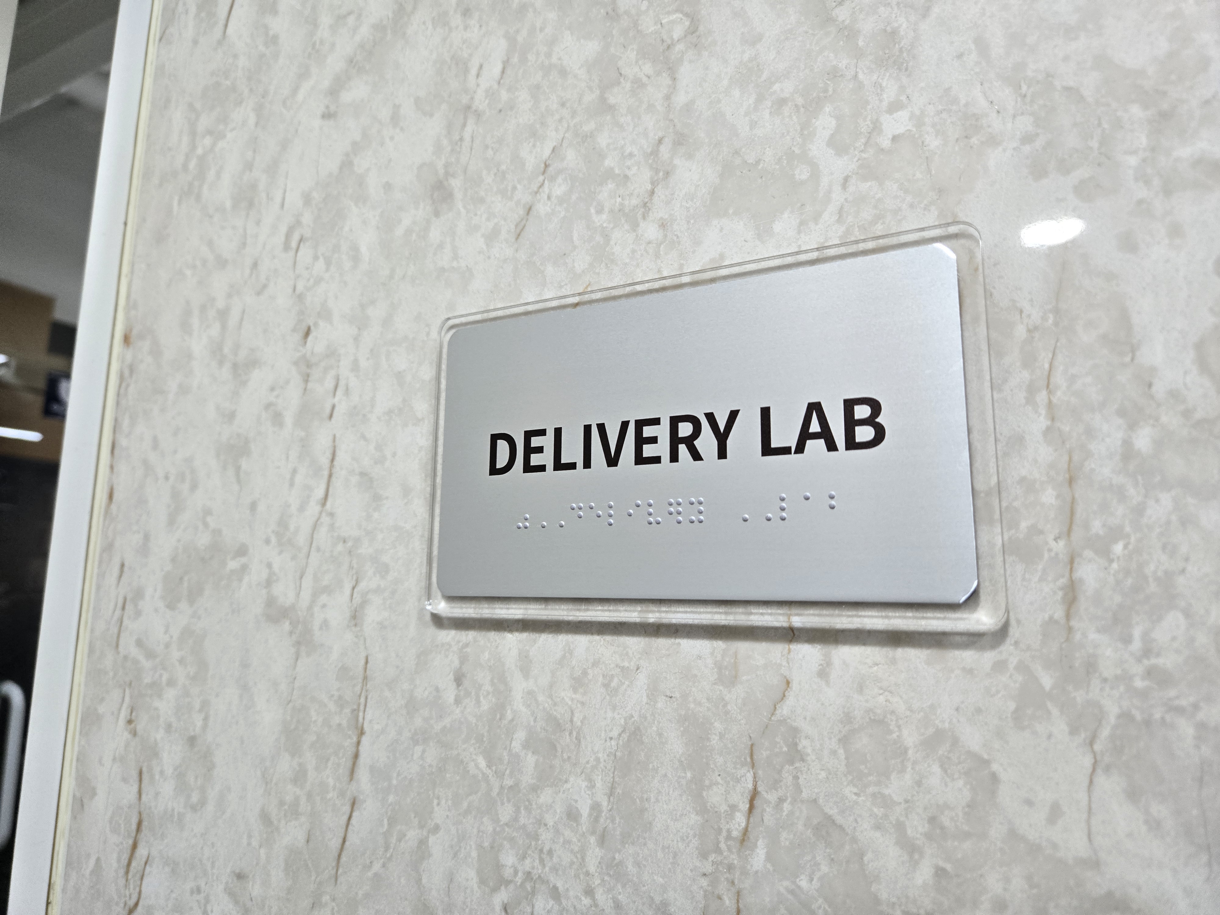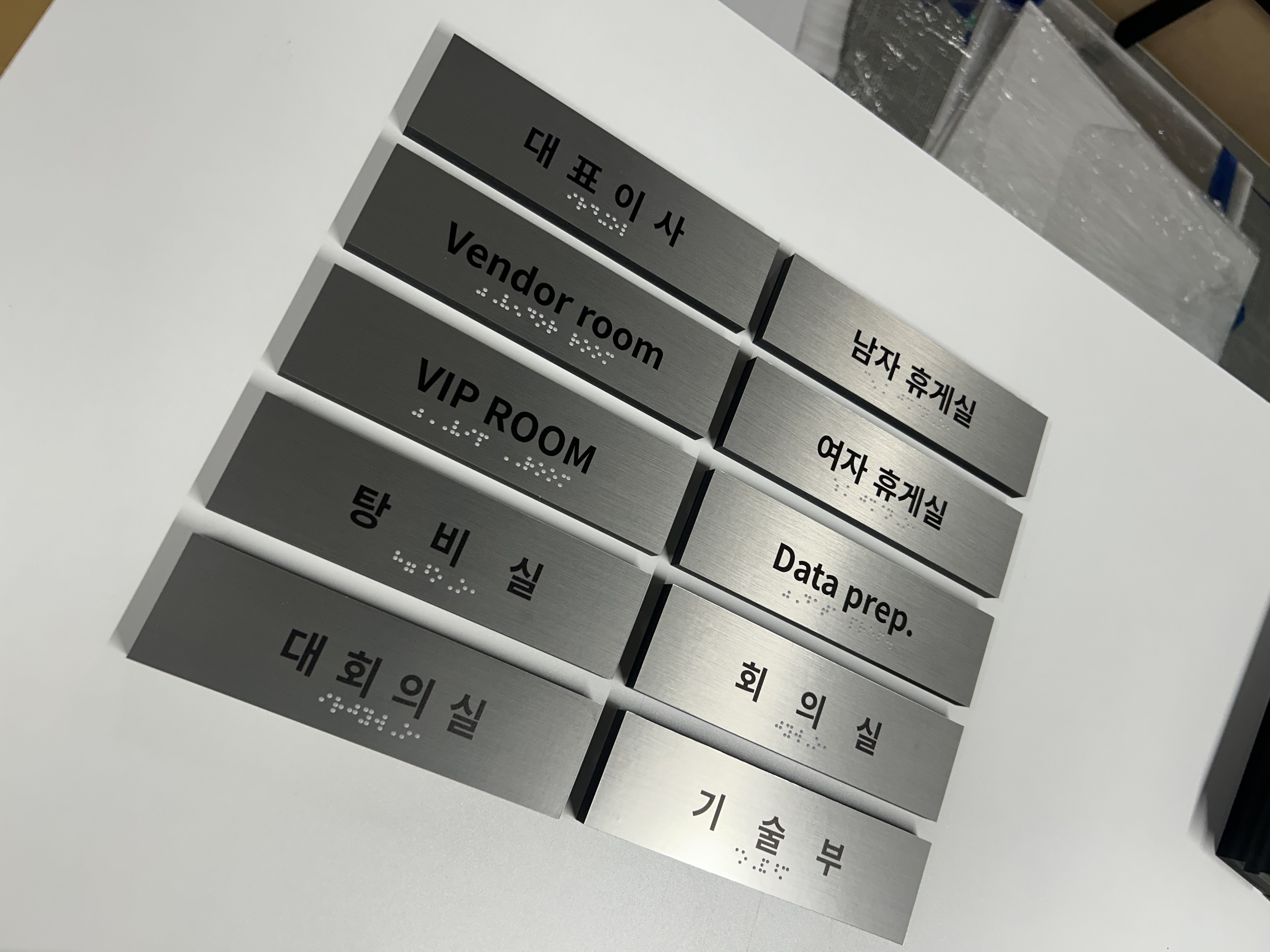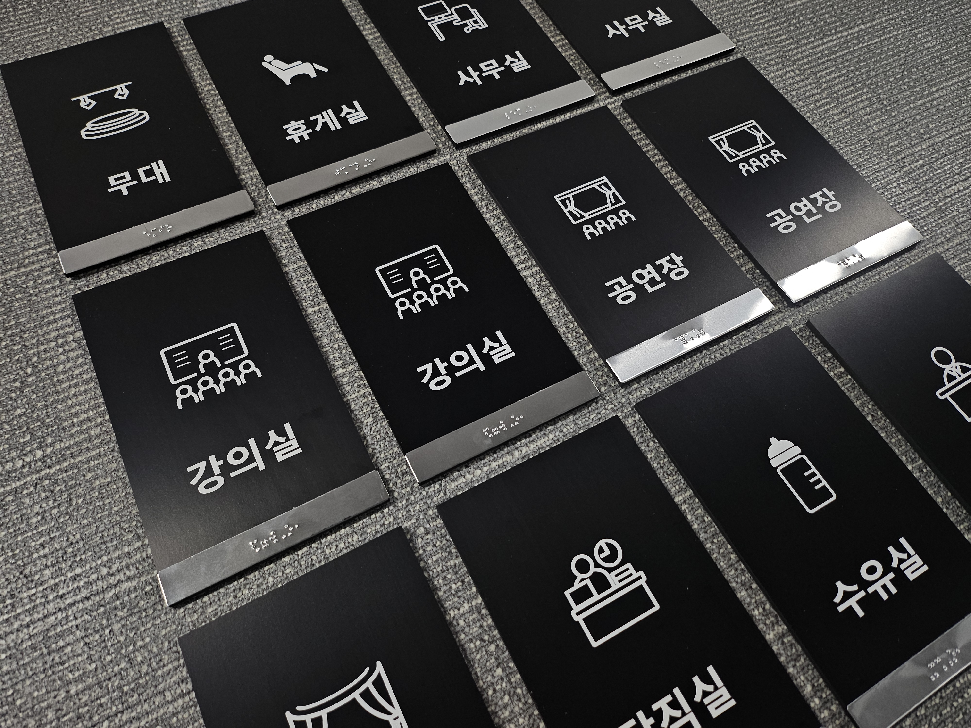1.5미터 높이에는 방이름을 표기한 점자표지판을 부착하여야합니다.